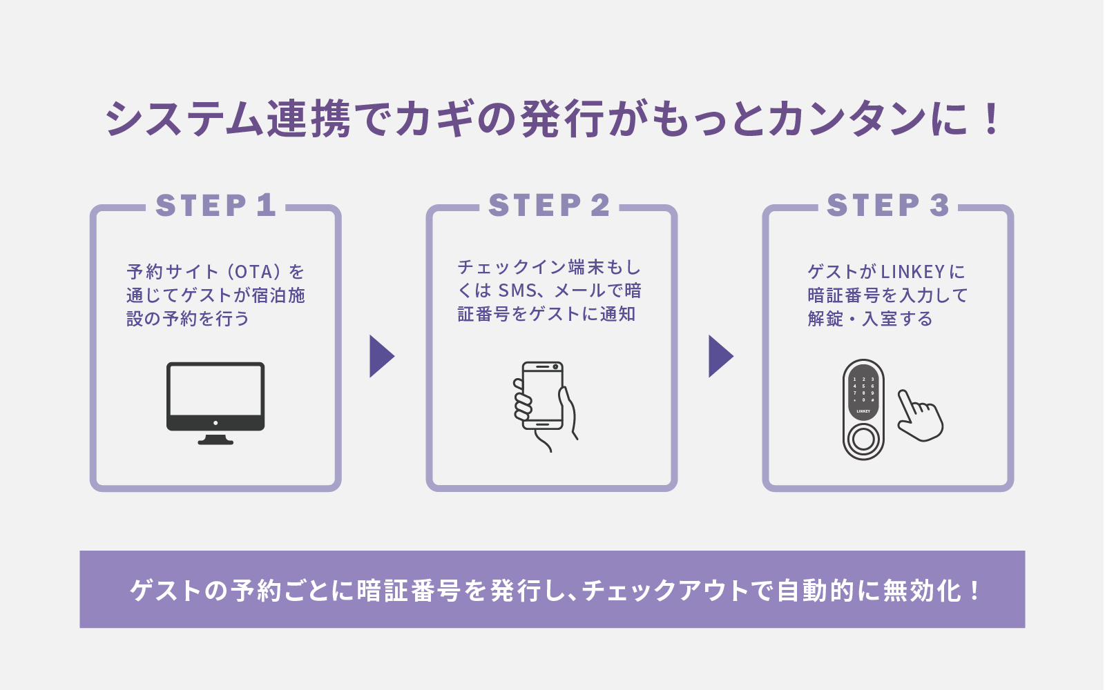 さらに、予約管理システム(PMS)を活用すれば、予約確定時に「鍵の受け渡し案内」などを自動で送信することも可能です。